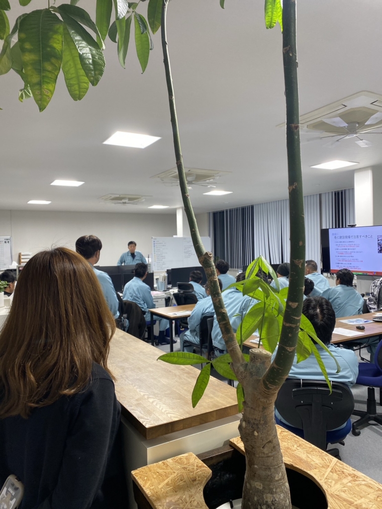 最後に、社長より総括。建設現場だけではなく、移動中の交通事故によって、命に危険が及ぶことのないように気を付けようと締めくくりました。